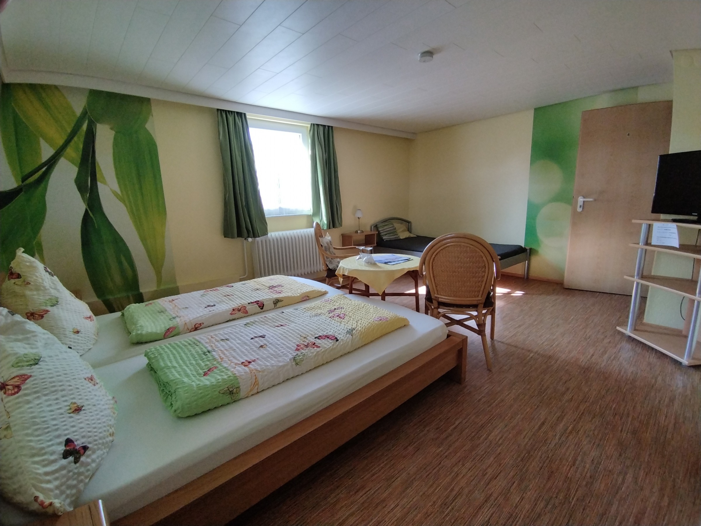 Ebenso haben wir schöne Einzelzimmer und großzügige Familien- oder 3-Bett-Zimmer mit Bad/Dusche/WC und TV in unserem Angebot.